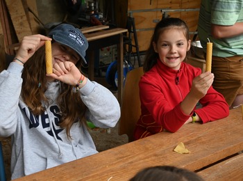 We proberen alvast zelf ons papier te scheppen om het menu op te schrijven. Ook de pizza's moeten getest worden alvorens we ze kunnen serveren aan de gasten. En als dessert dacht de gekke chef aan overheerlijk roomijs! Zal het ons lukken om lekker ijs te maken? En op de kidsmenu? Boterhammekes met zelfgemaakte choco! Train maar alvast je armspieren, want zelf choco maken vraagt om veel... schudden, schudden, schudden! Het restaurant kleden we aan met zelfgemaakte kaarsen!